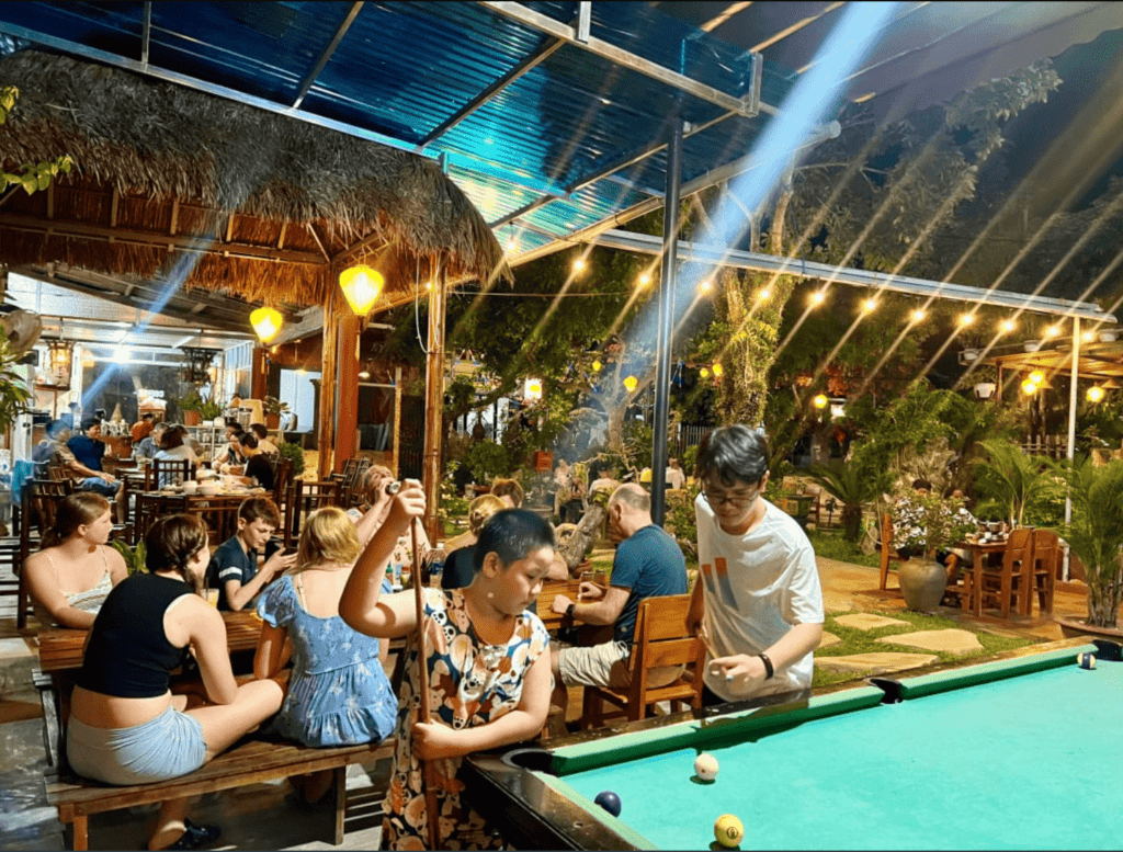 Ideal for solo travelers seeking a social atmosphere, this location boasts a vibrant vibe with an excellent onsite restaurant, along with a bar, pool table, and pool for entertainment. Guests can also enjoy complimentary breakfast, air-conditioned rooms, and a prime location.